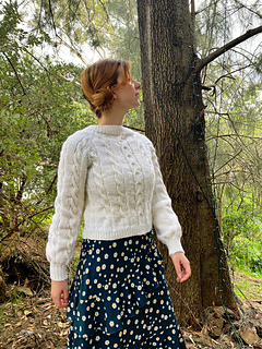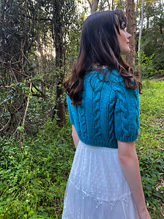 The Mystical Time Sweater is a raglan with 3 different cables.