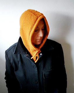 Die Kapuze wird nahtlos von oben gestrickt. Sie hat ein hübsches Zopfmuster auf dem Kopf und am Hinterkopf. Entlang der Gesichtsöffnung sorgen schöne Details und ein professionelles Finishing für