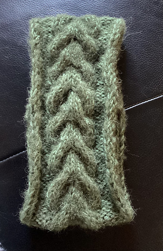 Techniques used: Provisional cast-on, cable knitting (3/3 LC, 3/3 RC), I-cord edges, Kitchener stitch