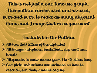 This pattern is designed to be re-useable…you can use and re-use the pattern, over and over, to make as many name doilies as you want.