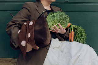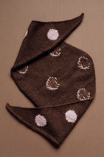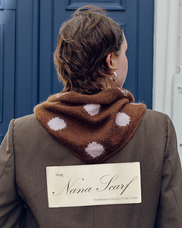 The Nana scarf is knitted flat in stockinette and uses a mix of fair isle and intarsia to create the color work. The triangle shape is created by increases on both the knit side and purl side.