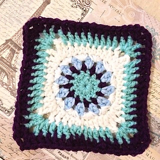 Blue squares made with Lion Brand Mandala Ombrè in Mantra and some scrap cream color.