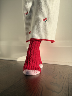 Length cuff to beginning of heel flap: 5.5 (6.5, 7.5, 8)” / 14 (17, 19, 20) cm or to desired length.