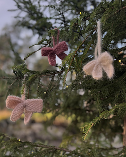 The Naomi Bow is a decorative bow in moss stitch. The bow is the perfect scrap yarn project for knitted Christmas decorations.