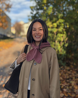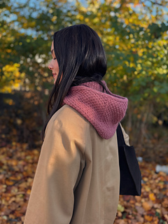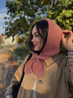 The Naomi Bow Bonnet is a hood with a keyhole scarf attached.