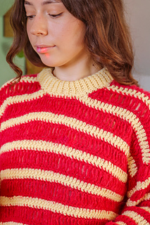 The Nari Sweater is an oversized striped crochet crewneck with a relaxed, modern silhouette and beautiful drape. It’s designed to be comfortable and versatile, perfect for layering and everyday wear.
