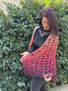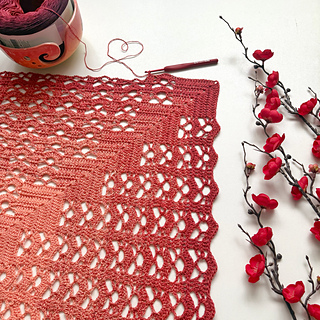 A light and airy lacy shawl with a beautiful flowing stitch pattern and soft drape. The design features easy-to-memorize repeats, making it perfect for advanced beginners who want a relaxing yet rewarding project.
