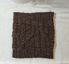 28 stitches and 30 rows = 10cm / 4” in cable knitting, worked in the round and blocked.