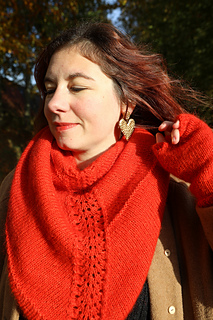 Cela faisait longtemps que je n’avais pas tricoté un châle et lorsque Lolita, alias Lolilafée, m’a proposé de travailler avec ses laines (et son nouveau coloris) en vue du Ch’ti Bazar, j’ai sauté sur l’occasion. De plus, cette nouvelle couleur Tango est faite pour moi : un rouge orangé bien vif qui réveille l’automne et nos tenues !
