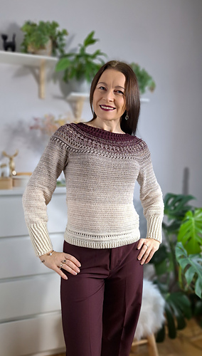 Sweter Nathalie można wykonać wersji kardigan lub pulower.