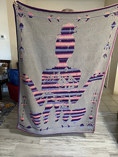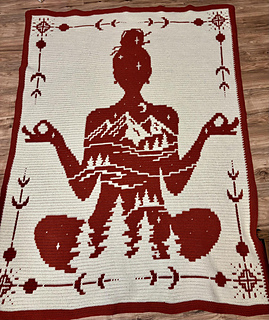 Find peace in every stitch with Nature’s Serenity, a visually striking crochet blanket pattern that celebrates the harmony between humanity and nature. Featuring a meditative silhouette cradling a serene landscape of mountains, trees, and birds, this design invites calm and reflection into any space.