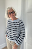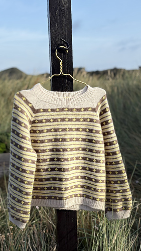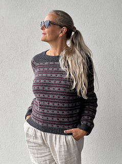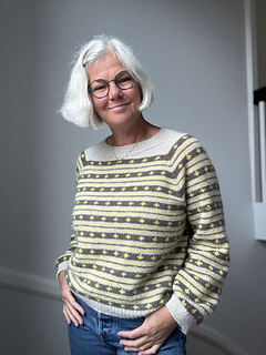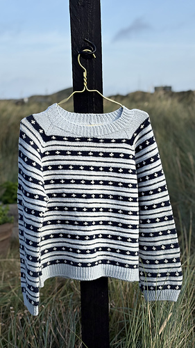 Nautic Sweater is a striped raglan sweater with a twist. The small colorwork detail in the wider stripes gives the sweater its unique character.