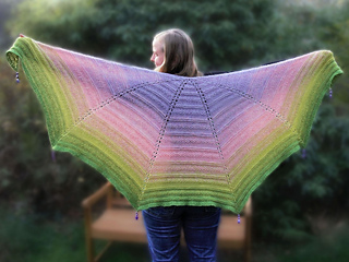 300 g Garnmanufaktur Maya Farbverlauf 3-fädig, (250 m/100g) 50% Acryl, 25% Alpaka, 25% Wolle; Rundstricknadel 5 mm, 6 Maschenmarkierer, falls gewünscht 6 Perlen-Sets für die Spitzen