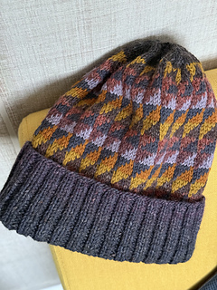 Le bonnet est travaillé à plat, afin que le raccord du jacquard soit parfaitement aligné et net.