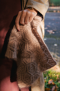 A sophisticated addition to your handmade wardrobe. The brilliant shine and softness of Gregoria Fiber’s Kidsilk lace yarn is the perfect match for this design inspired by the literary scene of between-wars London.