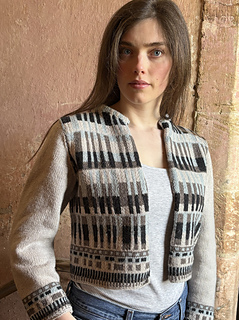 WS(Purl) colour work. The Main bodice to underarm of the jacket is knitted on one needle, and then