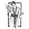 Materials required: 5oz 5-ply fingering; 4oz of a contrasting colour; a pair of knitting needles, size 4 or 5; a pair of finer ones, size 8, for knitting sash.