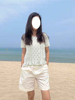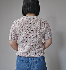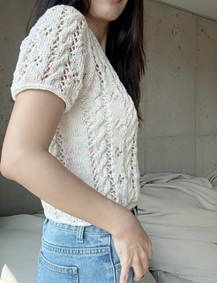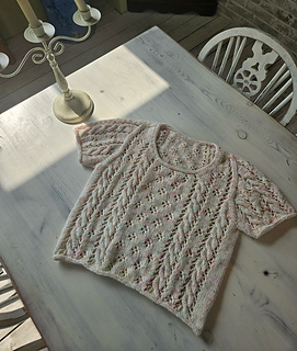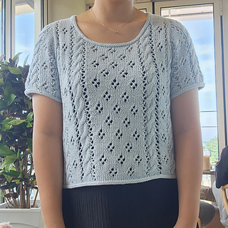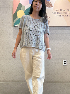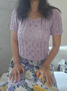 With its charming combination of eyelet lace and cable textures, it creates a cute and playful look—perfect for all seasons. The softly curved neckline and naturally shaped shoulders are key design features that make this tee so special.