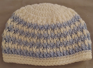 This is a pattern only for a beginner level crochet baby beanie size 0-3 months made with light yarn and size F (3.75 mm) hook.