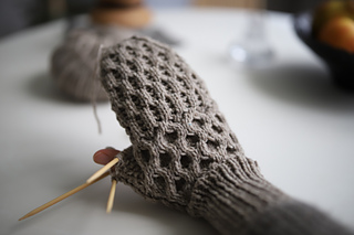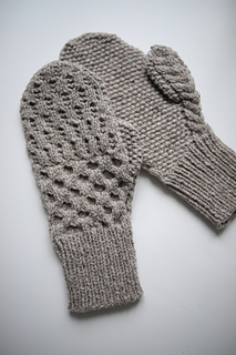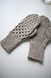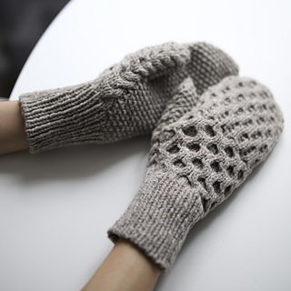 Nid Mittens feature a slightly tight cable knit pattern that keeps your hands warm. Brighten up your winter mood with a charming yet sophisticated design. They also make a lovely gift. They start with the ribbing on the cuff, then the body of the mitten is knit. Next, the thumb is separated from the main body and both parts are knit to the tips.