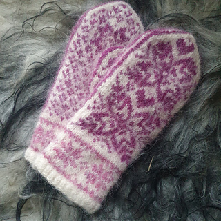 The Night Walk Mittens are rather tightly knitted, using Swedish 3-ply Wool Yarn from Ullcentrum Öland, rustic Gammelnorsk Spaelsau 2-ply Wool yarn and/or Lettlopi, which makes them very durable and warm but soft. As long as you can get the correct gauge, you can also use thinner yarn. I even made a very light version using Rauma Finull PT2.