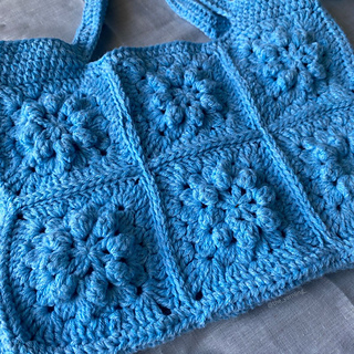 The Nila Bag is a charming, floral-inspired crochet tote made entirely from delicate flower granny squares. Each square blooms with soft texture and color, coming together to form a beautifully structured yet lightweight bag that feels handmade in every stitch.