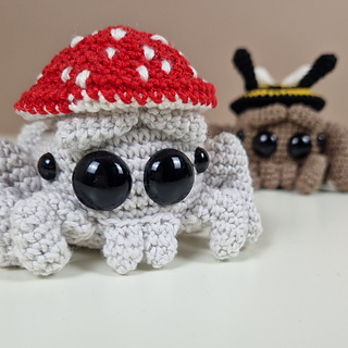 Nina, the little jumping spider, loves to dress up. Every day she picks a new hat – frog, bee, unicorn, mushroom, wizard, or pumpkin. In this detailed step-by-step crochet pattern, I’ll show you how to crochet Nina and all her adorable hats with ease. Over 70 photos guide you through the process and make crocheting a true pleasure.