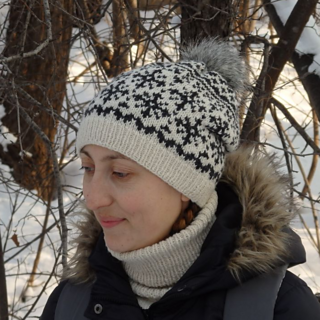 Nivosa Hat is a unisex wintery colorwork hat made with a DK weight yarn with two highly contrasting colors. Four adult sizes presented in a pattern ensure that you will be able to get a perfect fit for a desired look.