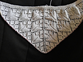 This pattern is fully written and also includes charted instructions. You can easily adjust the number of repeats to make a shawl to suit you and your yarn. You can repeats Part B (repeating lace part) as many times as you like. You can also work more or less repeats of The Garter Section to add more or less garter to the border.