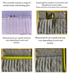 This useful design is very flexible and can be knitted for any size Knitting pins of any length, Crochet hooks, cutlery for capers, caravaners, mobile home owners helps stop the rattling when driving, Pens, Pencils. Artist Paint Brushes and Even for a set of small tools.