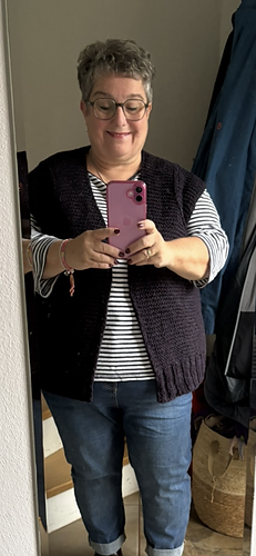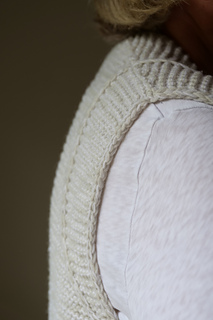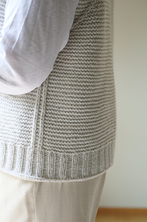 Noa is a timeless yet modern piece, worked entirely in garter stitch. Its clean design is elevated by a bold line of slip stitches that elegantly trace the shoulder, adding a subtle yet striking detail.