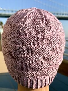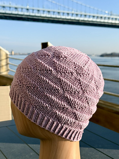 The hat is worked in the round with a 1×1 twisted rib brim, followed by the repeating texture pattern and a clean, straightforward crown decrease. It’s an easy, rhythmic knit that works well for both newer knitters and experienced knitters looking for a relaxing project.