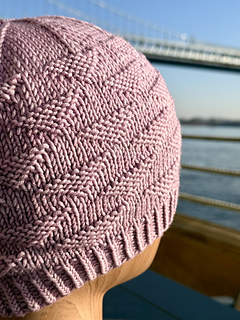 Noble Street Beanie is a textured, brim-up hat featuring a simple triangle motif created with knits and purls. The pattern is written and charted, making it a great option for knitters who want to practice reading charts as well as those who prefer written instructions.