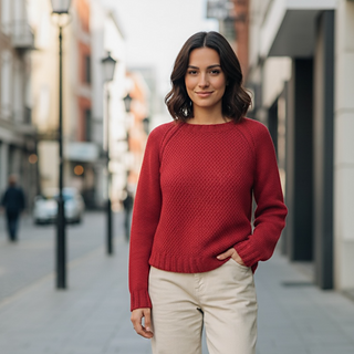 El Suéter Nobu es un diseño de líneas simples y atemporales, ideal para convertirse en un básico de tu guardarropa tejido a mano. Su construcción top-down sin costuras lo hace cómodo y fluido de tejer. El cuerpo está trabajado en punto musgo doble, lo que le otorga textura y estructura, mientras que las mangas en punto jersey aportan contraste y suavidad. Con su silueta raglán clásica y un acabado limpio, es un proyecto versátil tanto para quienes buscan su primer suéter como para tejedoras experimentadas que disfrutan de la belleza en la sencillez.