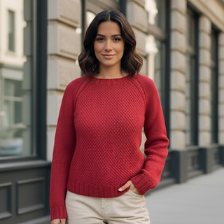 Nobu Sweater is a design with clean, timeless lines—an ideal piece to become a staple in your hand-knit wardrobe. Its seamless top-down construction makes it comfortable and a pleasure to knit. The body is worked in double moss stitch, giving it both texture and structure, while the stockinette sleeves provide contrast and softness. With its classic raglan silhouette and neat finish, this is a versatile project suited for both first-time sweater knitters and experienced makers who appreciate beauty in simplicity.