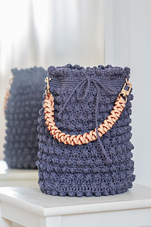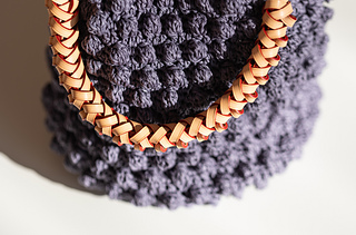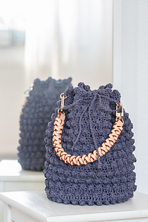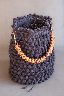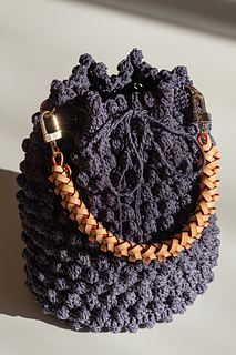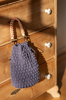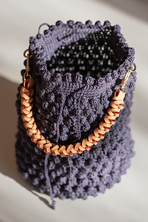 The ribbon used to close the opening of the “Noni Bag” can be worked as a simple chain stitch (in different colors to give the bag a different look to match your outfit) or you can use a leather cord that is pulled through the stitches, or a ribbon made of lace, velvet, satin, or even a ribbon sewn from a beautiful fabric.