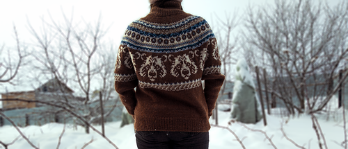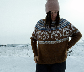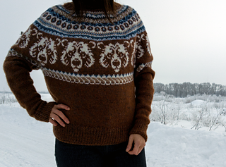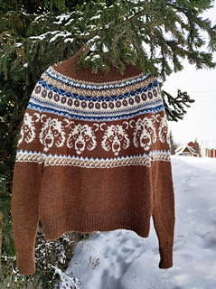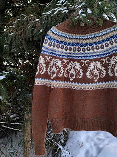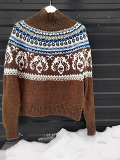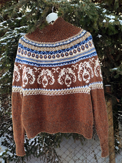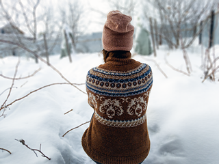 The Nordic Bear Sweater is worked seamlessly from the top down using a circular yoke construction, making it easy to try on as you go and adjust the body and sleeve length to your preference. The design features an intentionally oversized fit, with a deeper yoke and lowered armholes that create a relaxed silhouette.