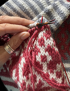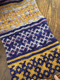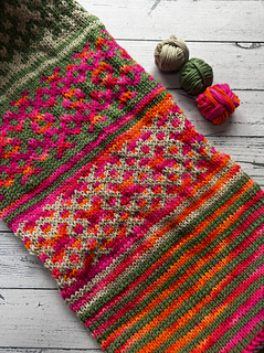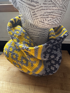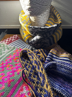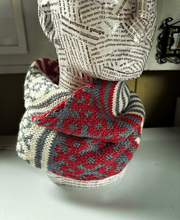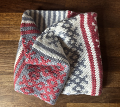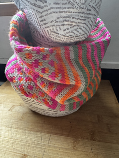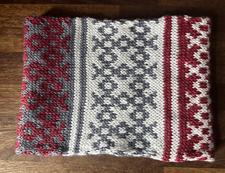 A cosy colourwork cowl worked in the round and grafted for a seamless finish. Using three shades of DK yarn (or very light worsted), stranded motifs bloom across the fabric, creating warmth and timeless style.