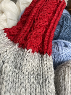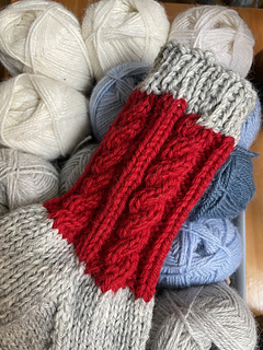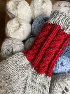 A warm pair of Nordic-inspired socks featuring the signature two-color cable cuff from the Nordic Twist mittens. Each twist symbolizes the strength of family and the comfort of connection — a design that feels like home. ️ *