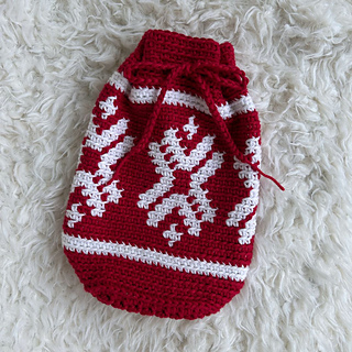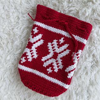The Nordic Gift Bag adds a touch of handmade elegance to any store bought gift. This crochet pattern is suitable for advanced beginner crocheters. You will use Intarsia Crochet while crocheting in the round to create this nordic inspired gift bag.