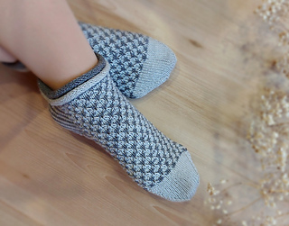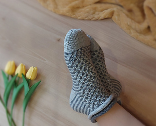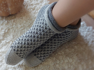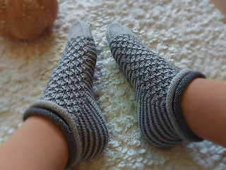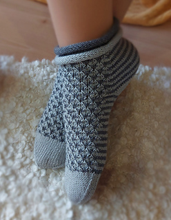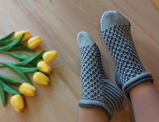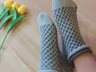 Skills required: basic knitting skills, decrease, increase, basic sock skills, short rows, gusset, turning the heel, short row toe, lace, Kitchener stitch.