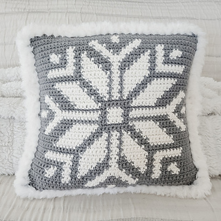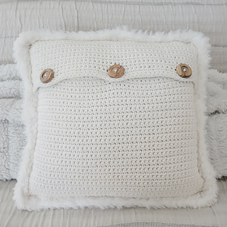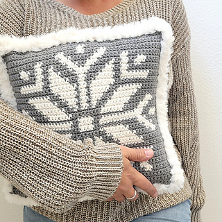 Finished pillow cover measures approximately 13 x 13 inches using the recommended materials (size may vary based on yarn and hook size used).