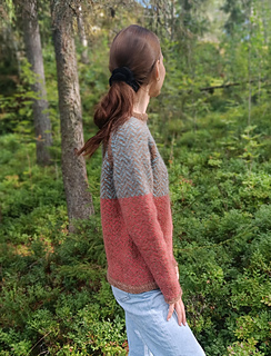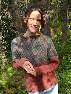 The NordicTweed sweater is worked bottom-up in the round. The body and sleeves are knitted separately and then joined at the underarms. The underarm stitches are placed on hold while the remaining stitches form the yoke, which is shaped with raglan decreases.