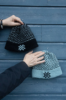Designed for warmth as well as beauty, the Nordkyn Hat features a doubled brim and dense colourwork to keep out the cold. As a thoughtful finishing touch, the double brim neatly hides the yarn ends and wrong side of the Roosimine inlay—proof that practical details can be just as satisfying as decorative ones.