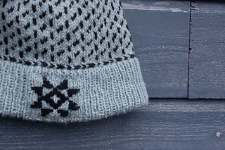 It features techniques including a striking Roosimine Estonian inlay, followed by a bold stripe of Ruhnu vits or Ruhnu braid, a distinctive variation of the vikkel lateral braid. The rhythmic colourwork that crowns the hat is inspired by a classic Norwegian fisherman’s sweater known as Islender.