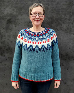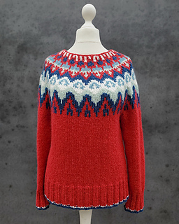 Ich empfehle die Passe mit dem EInstrickmuster mit einer halben Nadelstärke größer zu stricken als den Rest des Pullovers.