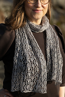 The open lace may look intricate, but the pattern has a clear rhythm that’s satisfying to knit. You work this rectangular scarf sideways, and the size is fully customisable from a skinny scarf to a large, lofty wrap.