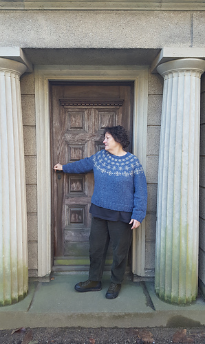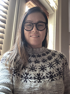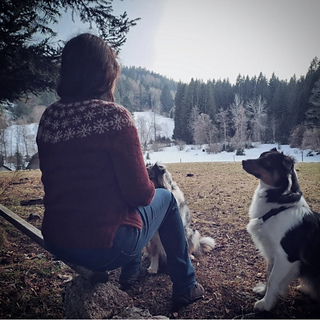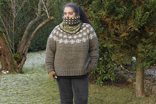 Starting with the yoke cast on, the sweater is worked seamlessly top down. After the yoke and short row shaping for a better fit around the neck, the body and sleeves are separated while casting on stitches for the underarms. The neckband is worked last to give you options to decide on its width once you have completed the entire sweater.
