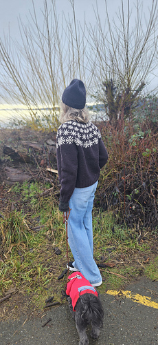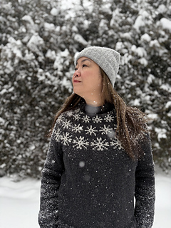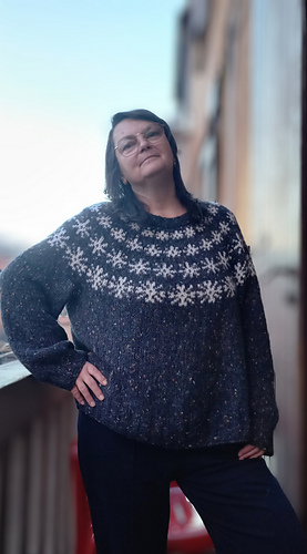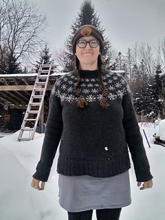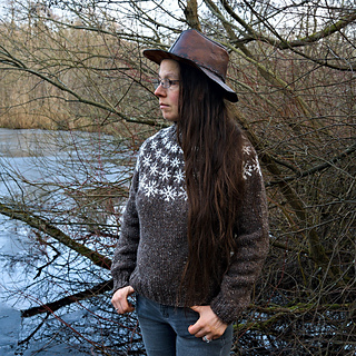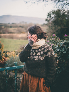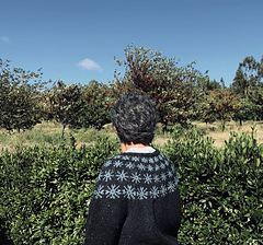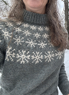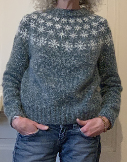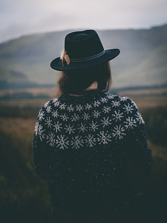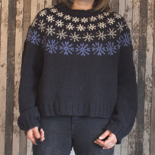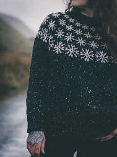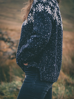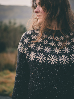 NORTHBOUND is a round yoke sweater with a top-down construction, relaxed fit and simple colourwork on the yoke, inspired by the winter sky over Dartry mountains and the first snowflakes of winter.