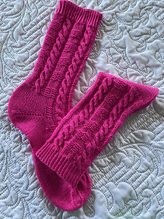 Northern Lights is a top-down sock featuring cables and texture bands which will show off solid or tonal yarns to advantage.